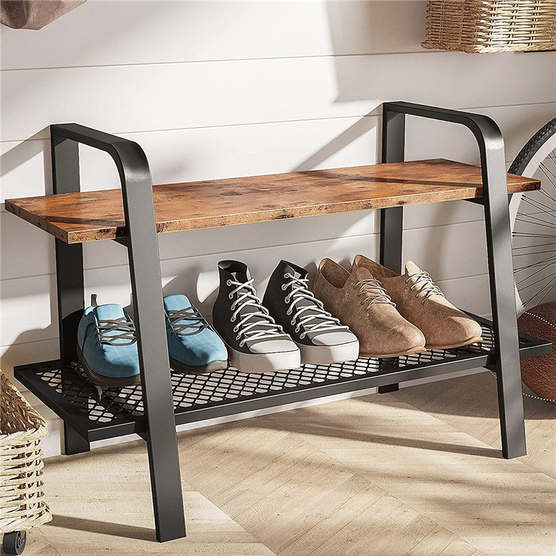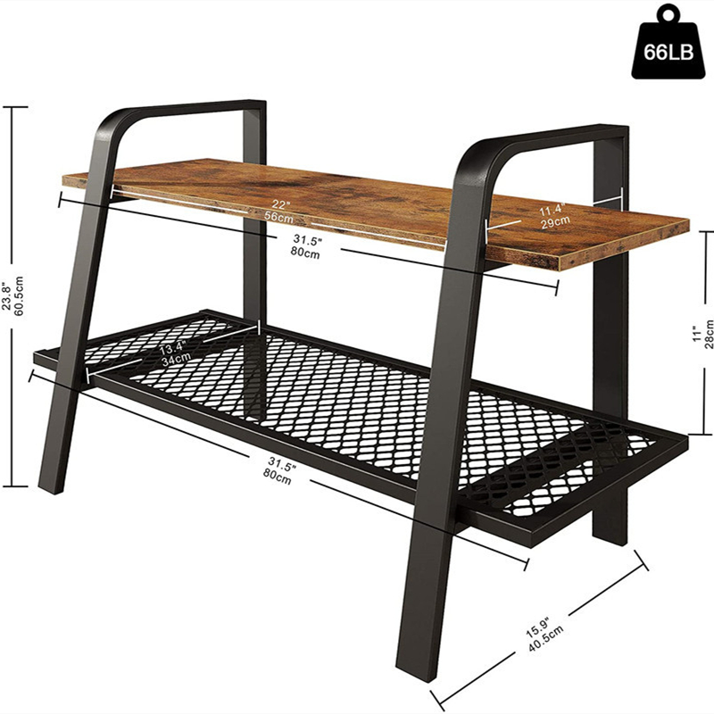 Тази селска кафява табуретка за повиване на обувки #стойка се състои от желязна рамка с матово покритие и висококачествена MDF плоскост. Здравият и надежден механичен дизайн осигурява отлична стабилност за дълготрайна употреба на #рафта за обувки. Рафтът от MDF в горната част на #рафта за обувки може да издържи тегло от 66 паунда. Можете да седнете на горната част на #рафта за обувки, за да се преобуете, така че потребителите да имат по-удобно преживяване при смяна на обувките.