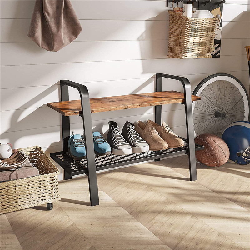 Тази селска кафява #стойка за обувки предоставя идеално решение за съхранение на входа на вашия дом. Металната скоба и пейка ви позволяват да седнете удобно при преобуване. Независимо дали в коридора, коридора или спалнята, тази #стойка за преобличане е много практична и идеална мебел, носеща повече щастие в живота на потребителите.