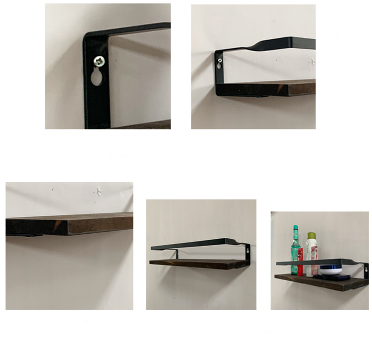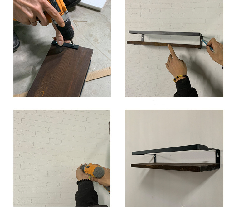 1. Primer utilitzeu un trepant elèctric per perforar el tauler de fusta i combineu el marc de ferro amb el tauler de prestatgeries de fusta de pi.