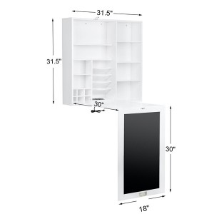 This cabinet with a stylish chalkboard front easily folds out (Murphy bed style) and converts into a convenient workspace that is perfect for your computer usage, scrapbooking, crafting, sewing, paying bills, homework and so much more! Also can use as a bar or serving table when you have company! The front of the cabinet is a chalkbaord and when opened, there are multiple storage units to keep your belongings. Also has side shelves for extra storage. Chalkboard folds up neatly and compactly Convenient cabinet design Storage area with varied shelf sizes for organization.