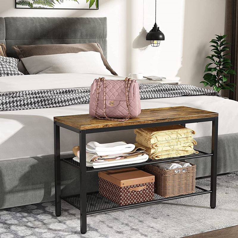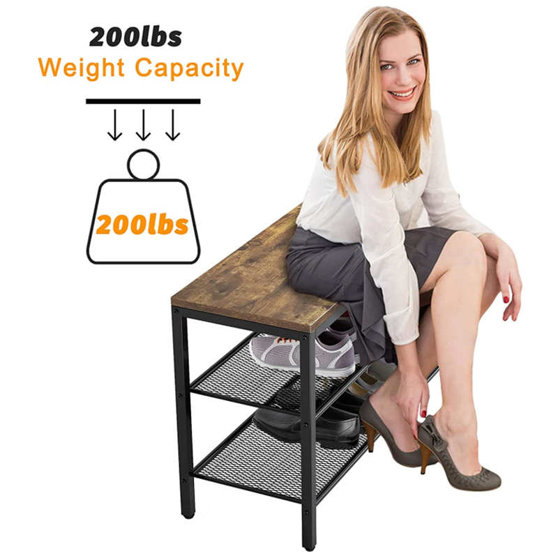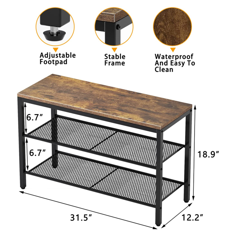 La rustika bruna ŝuoŝanĝilo #kabineto farita el ŝtala kadro kaj altkvalita ligno estas klasika kaj praktika. La dutavola stokado de fera krado-dezajno povas realigi la ordigon kaj bonordan stokadon de ŝuoj. La glata surfaco sur la supro de la ŝuo #kabineto provizas lokon por uzantoj por ŝanĝi ŝuojn kaj porti ŝuojn. Uzantoj povas sidi sur la ŝuo #kabineto kaj ŝanĝi ŝuojn kiam ili eliras aŭ hejmeniras, kio estas tre oportuna por uzi.