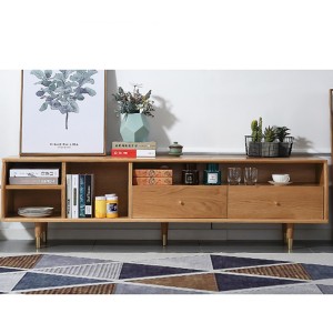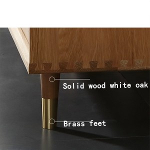 The three-dimensional rounded tapered cabinet legs, solid wood materials and precise tilt angle ensure the stability and firmness of the TV cabinet. With brass feet, the texture is fashionable and wear-resistant. The bottom of the TV cabinet does not touch the ground design to prevent moldy on the TV cabinet board, so you can clean the bottom of the TV cabinet. The precise ground clearance is scientifically designed according to the human body curve, allowing you to take things easily and effortlessly.