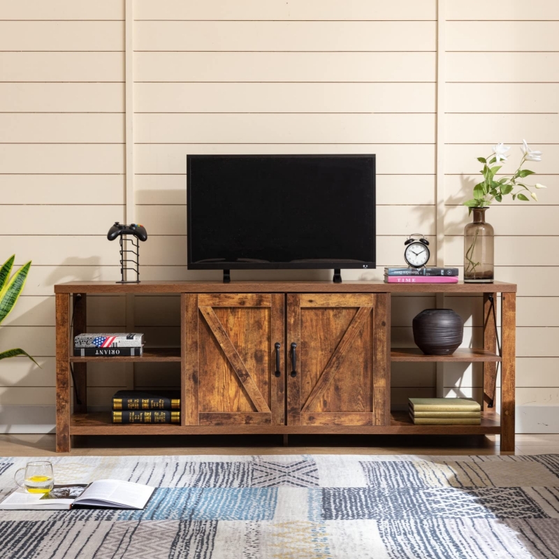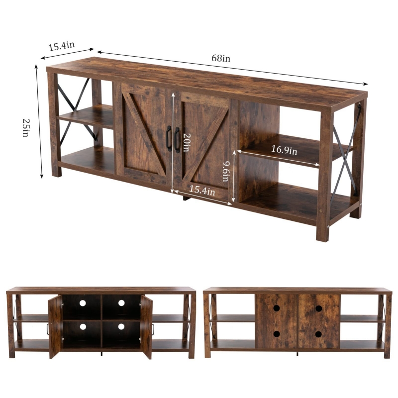 This is a TV #cabinet that can accommodate a 65-inch TV. The size of the TV #cabinet is 68*15.4*25 inches, which is equivalent to a TV #cabinet with a size of 172*40*63.5 cm. This large enough TV #cabinet can be placed in your living room or bedroom to meet your different needs. The rustic farmhouse style of the TV stand #cabinet will fit perfectly into your home decor.