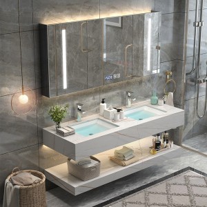 The open storage layout allows you to find the items you want at a glance. The novel segmented pattern enhances the overall fashion sense of the bathroom. The double-sided basin design makes the short morning orderly, and two people can wash at the same time, saving time.