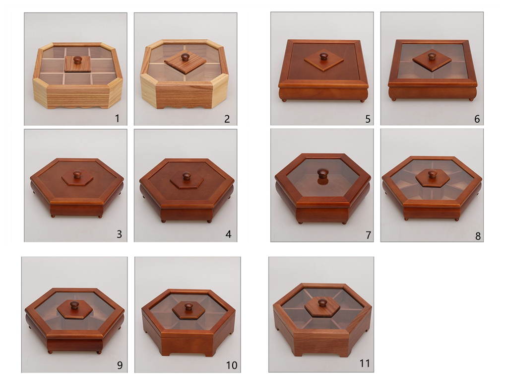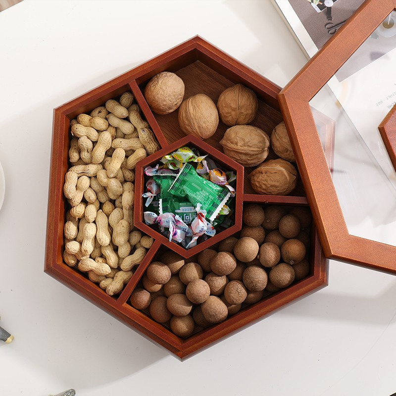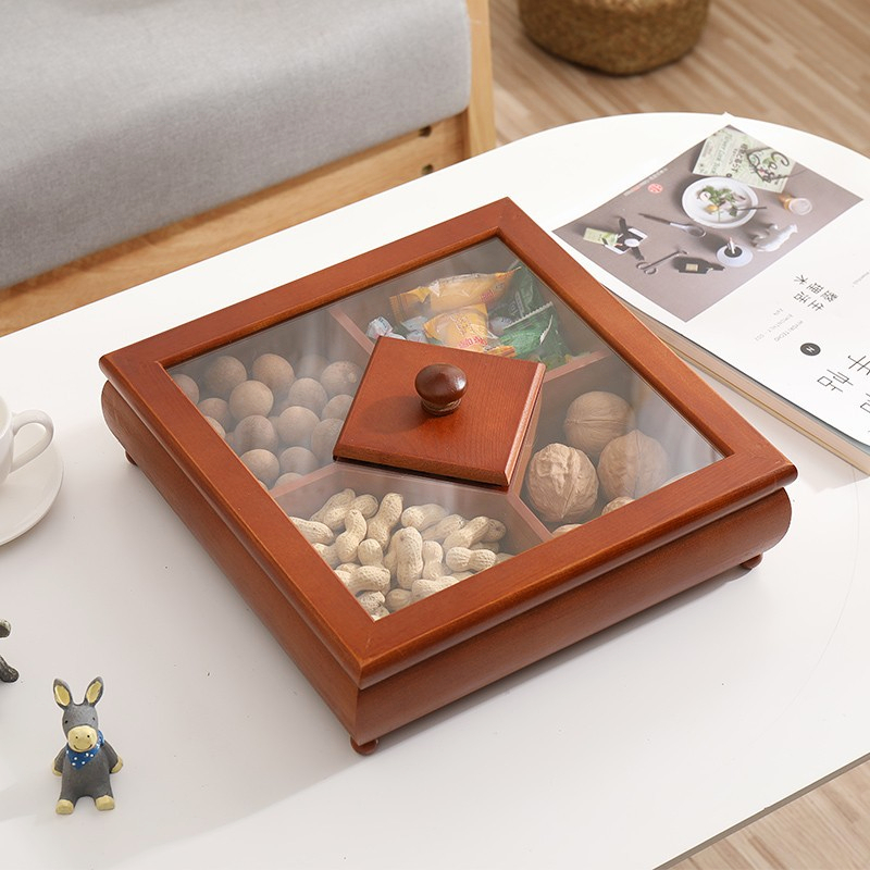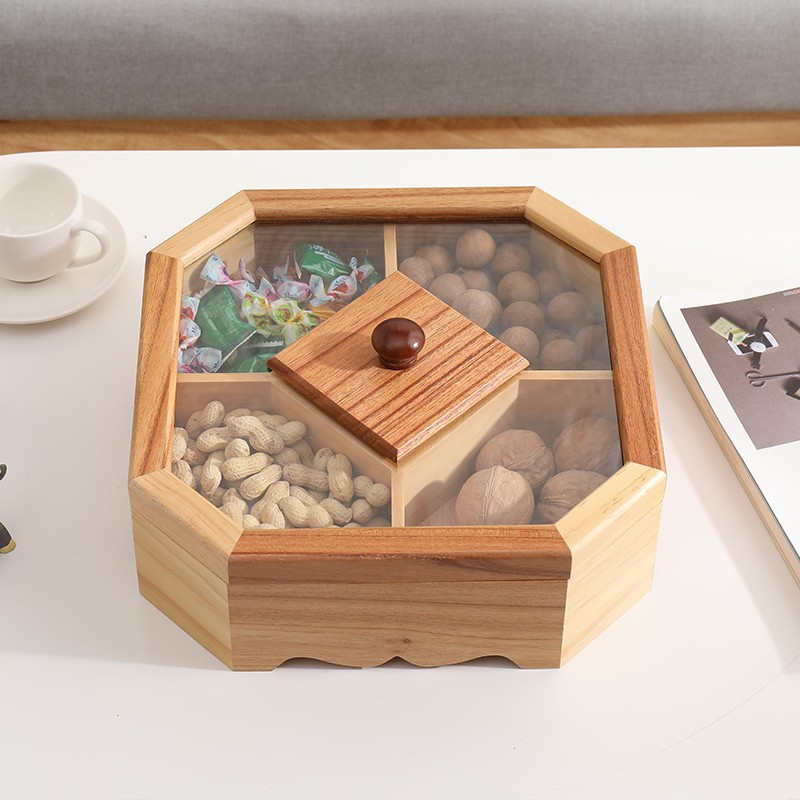 Questa #box di stoccaggio di noci è caramelle in stile cinese retro in legnu di pinu hè cuncepita cù una #box cover fatta di materiale acrilicu, chì permette à e persone di vede chjaramente l'articuli in a scatula di almacenamento senza apre a #box di almacenamento. Questa #box di almacenamiento hà una varietà di opzioni. L'utilizatori ponu sceglie una copertina #box di almacenamento in acrilico, una cumminazione di acrilicu è pinu, è una copertina #box storage di pinu secondu e so preferenze.
