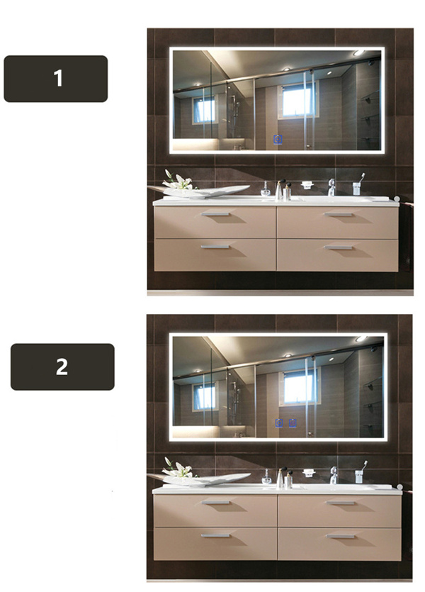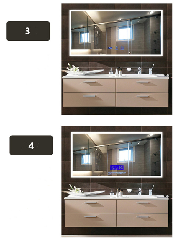 Konfigurace 3: Dvojitý dotykový spínač + bílé světlo (nebo teplé světlo) + elektronická ochrana proti zamlžování + zobrazení teploty a času