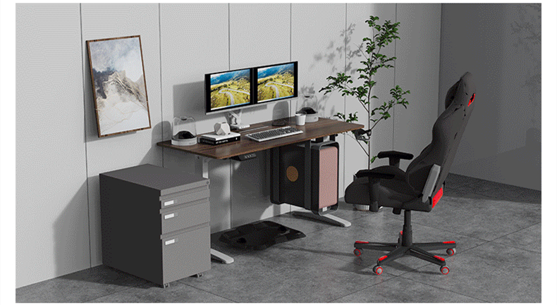 O uso deste #escritorio de pé axustable en altura permítelle cambiar entre as posicións sentado e de pé, o que permite aos usuarios ter un espazo de traballo e estudo saudable e cómodo. Este #escritorio de ordenador axustable en altura permite aos usuarios axustar libremente a altura da #escritorio sentado, e o deseño de #escritorio axustable en altura de pé permite que a maioría dos usuarios se beneficien enormemente ao axustar a altura da mesa sentada.
