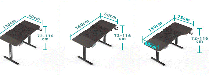 Este #escritorio de estudo axustable en altura está dispoñible en tres tamaños: 110*60*(72-117)CM, 140*60*(72-117)CM e 159*75*(72-117)CM. Este #escritorio de pé axustable en altura ten un rango de axuste de altura de 72-117 cm, e os usuarios poden axustar a altura segundo as súas necesidades.