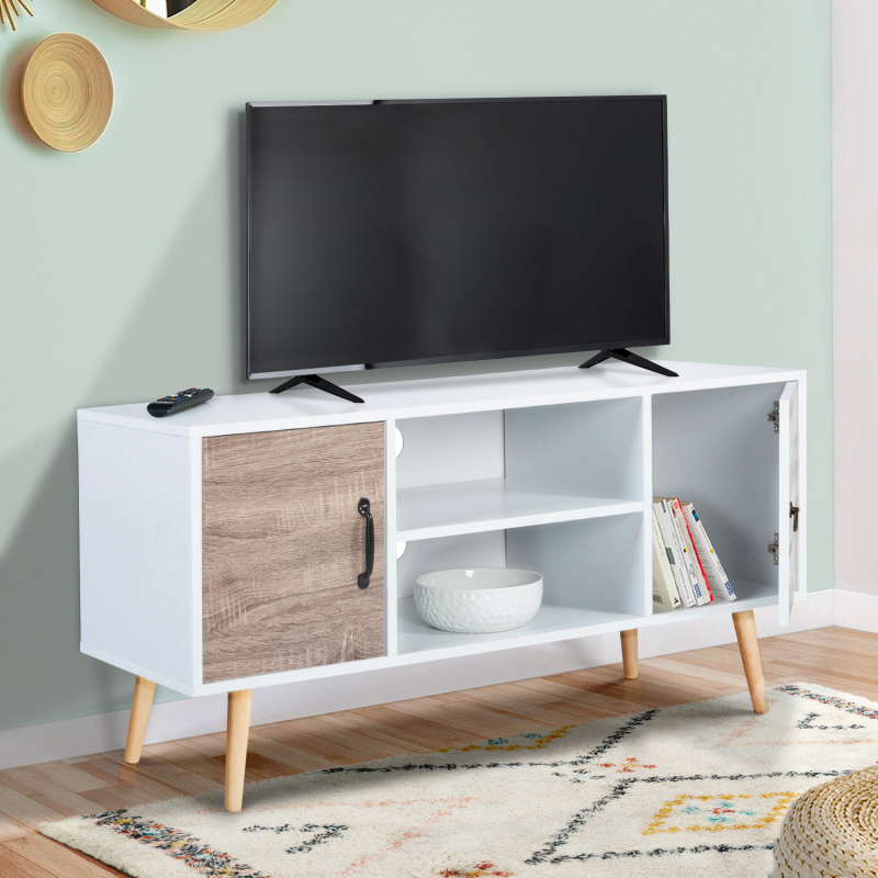 Wannan gidan talabijin na Scandinavian na Scandinavian yana amfani da haɗuwa mai sauƙi kuma mai amfani na allon MDF da ƙafafu na katako na katako, yana gabatar da katako mai ƙarfi, barga, kyakkyawa kuma mai amfani. Jirgin MDF yana da fa'idodi na kyau da santsi bayyanar, itace mai kyau, kyakkyawan juriya na ruwa da juriya. Ƙafafun majalisar na gidan talabijin na TV an yi su ne da itace mai haske tare da ƙafar mazugi, waɗanda suke da ƙarfi da ƙarfi. Wannan salo da ƙirar tsarin yana ba majalisar TV ɗin kyan gani da siriri, tare da salon Scandinavian gaye sosai.