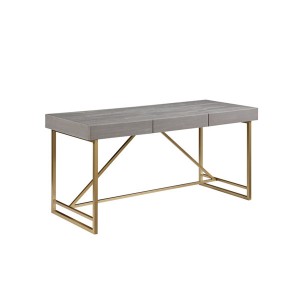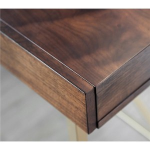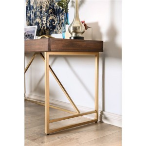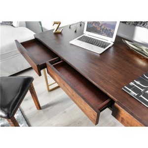 Thaum koj zaum ntawm #chaw haujlwm #furniture, nws qhov loj me xav tias loj. Lub walnut sab saum toj ntxiv ib lub ntuj tsim rau hauv chav tsev, zoo kawg nkaus teeb tawm ntawm cov ceg kub thiab kho kom zoo nkauj.