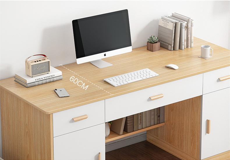 #Biwo òdinatè a fèt ak twa tiwa depo, epi itilizatè yo ka mete afè yo jan yo vle san yo pa enkyete sou vi prive. Anplis de sa, #desk sa a gen konsepsyon depo pòt sou tou de bò, epi yo ka mete gwo atik nan kazye yo. Pati ki pi ba nan Desktop la se yon etajè depo orizontal, ak liv ak dokiman yo ka mete sou etajè a stab, ki reyalize itilizasyon an plen nan espas ki la kanpe #desk epi pote plis konvenyans nan lavi itilizatè a.