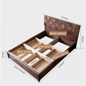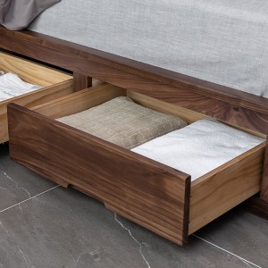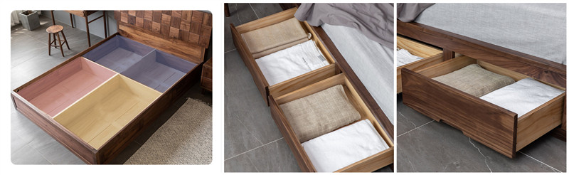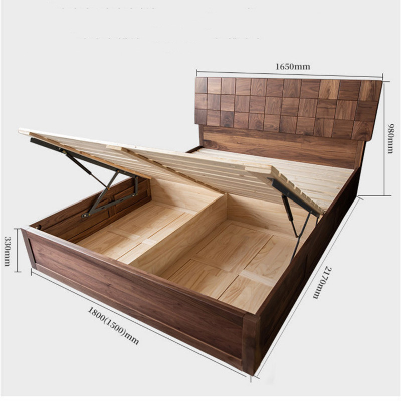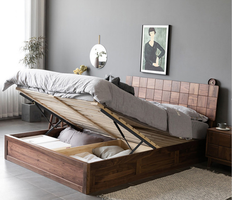 北欧ライト高級北米ブラックウォールナット丸太ハイボックス圧力収納無垢材引き出し収納ダブルベッド0023