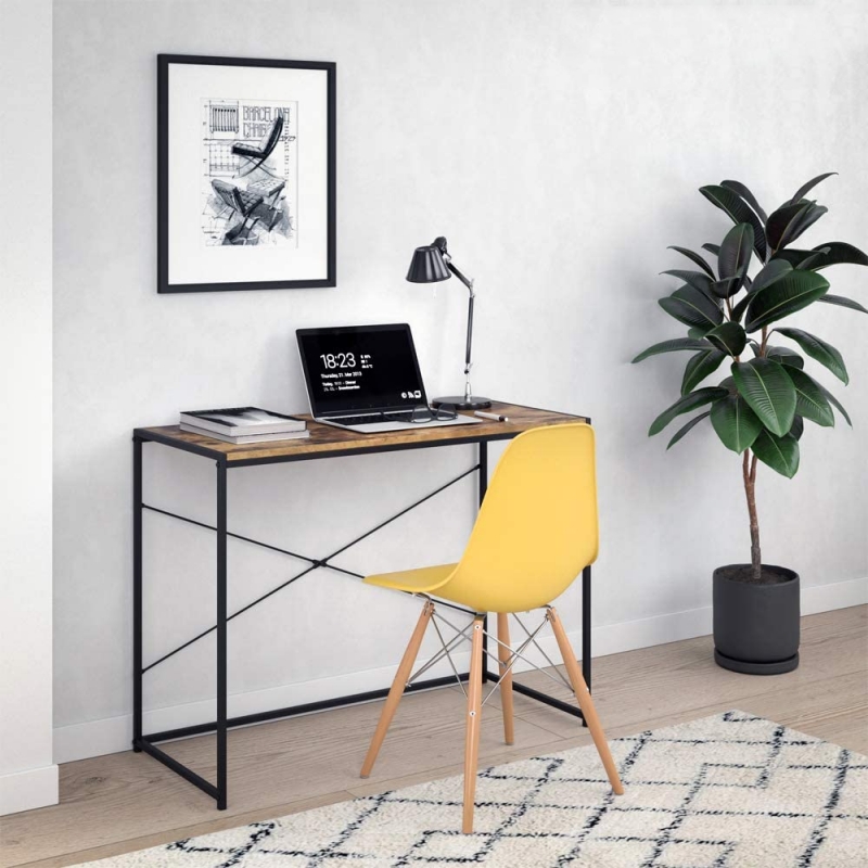 #Meja wong siji iki bobote udakara 7.7kg, dadi entheng banget. Mulane, pangguna bisa mindhah meja miturut kabutuhan. Apa ing kamar turu, sinau utawa ruang tamu, #meja minimalis iki bisa digunakake. Ndhuwur meja panel warna kayu pedesaan digabungake karo pigura logam ireng kanggo nampilake tampilan #meja retro lan minimalis. Meja sinau siji sing prasaja sing dipasangake karo kursi sing cocog bakal nggawe ruang kerja sing cukup kanggo sampeyan.