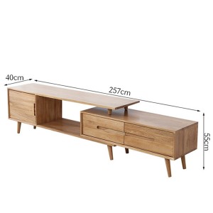 Kabinet TV kayu padhet sing bisa ditarik kanthi lemari sisih kayu padhet nyedhiyakake gaya sing prasaja nanging modis, menehi rasa nyaman lan santai ing omah. Dhuwur lemari TV sing ilmiah lan wajar ora bakal kesel nalika nonton TV, nanging bakal ngilangi rasa kesel.