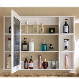 កញ្ចក់ពណ៌ប្រាក់ គុណភាពខ្ពស់ រូបភាពច្បាស់ ការពារច្រេះ មិនខូចទ្រង់ទ្រាយ រូបភាពកញ្ចក់ធម្មជាតិ និងពិត។ ទូកញ្ចក់ដែលអាចបើកបានជួយបង្កើនទំហំផ្ទុក និងកាត់បន្ថយការពង្រាយនៅក្នុងបន្ទប់ទឹក។ ទូដាក់ចំហៀងទាំងសងខាងអាចទុកផលិតផលថែរក្សាស្បែកដែលប្រើបានទូទៅដើម្បីងាយស្រួលចូល។