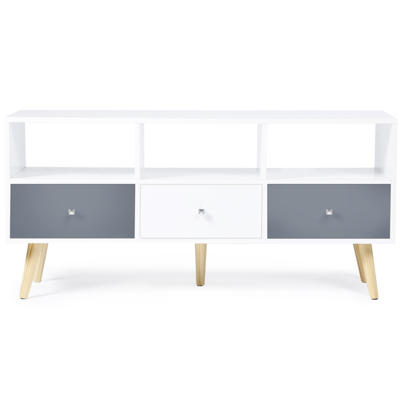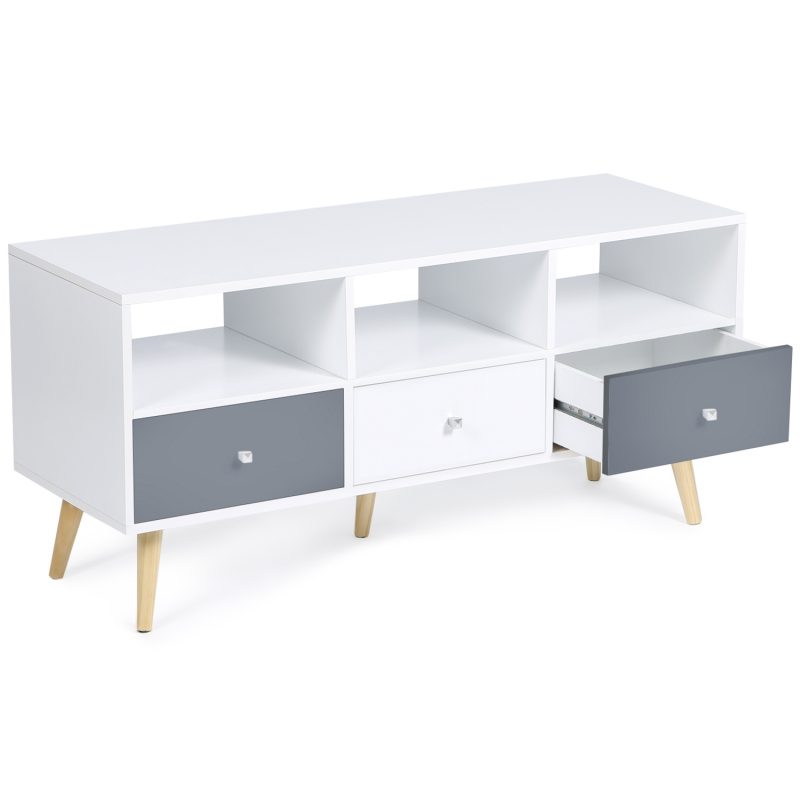 ទូរទស្សន៍ #Cabinet នេះទទួលយកការរចនាកន្លែងផ្ទុកពីរជាន់។ មានបន្ទប់ស្តុកទុកចំនួនបីដែលមិនមានការស្ទះនៅផ្នែកខាងលើ ហើយខ្សែឧបករណ៍ពហុមេឌៀ និងឧបករណ៍អគ្គិសនីអាចឆ្លងកាត់បានយ៉ាងងាយស្រួល ដោយធានាបាននូវការផ្ទុក និងការប្រើប្រាស់ឧបករណ៍ផ្សេងៗនៅក្នុងបន្ទប់។ ផ្នែកខាងក្រោមនៃទូរទស្សន៍ #Cabinet គឺជាការរួមផ្សំនៃប្រអប់ផ្ទុកទិន្នន័យពណ៌ប្រផេះ និងសចំនួនបី។ ធាតុតូចៗ និងធាតុឯកជនអាចត្រូវបានតម្រៀប និងរក្សាទុកក្នុងថតឯកសារខាងក្រោម។ ថតត្រូវបានបំពាក់ដោយចំណុចទាញដែលមានទាំងការតុបតែង និងជាក់ស្តែង ដែលធ្វើឱ្យវាកាន់តែងាយស្រួលសម្រាប់អ្នកប្រើប្រាស់ក្នុងការរក្សាទុក និងយករបស់របរនៅក្នុងថត។