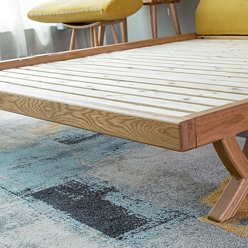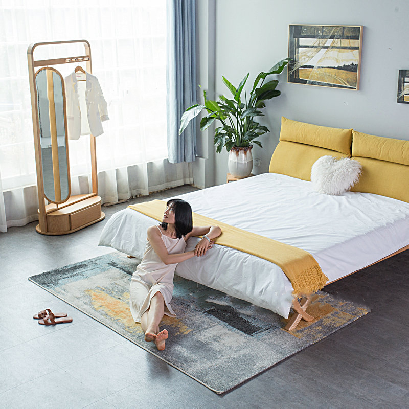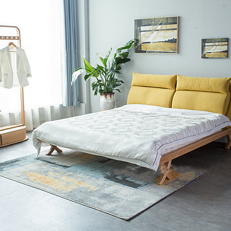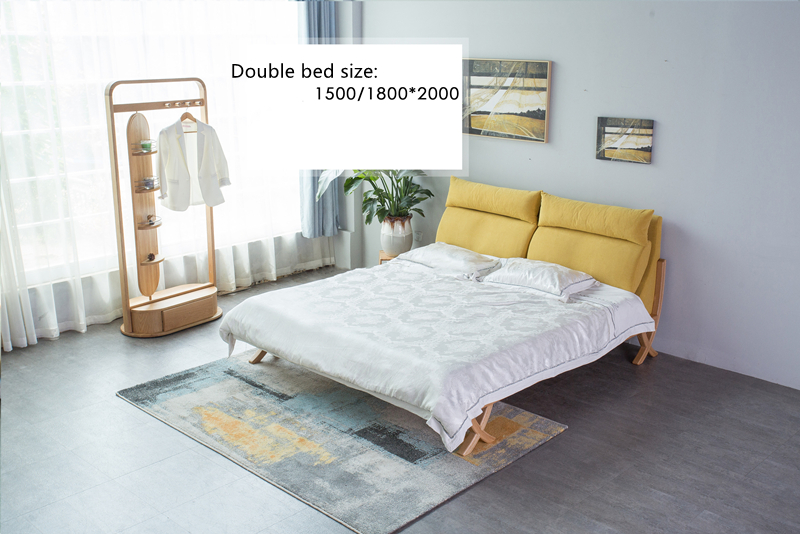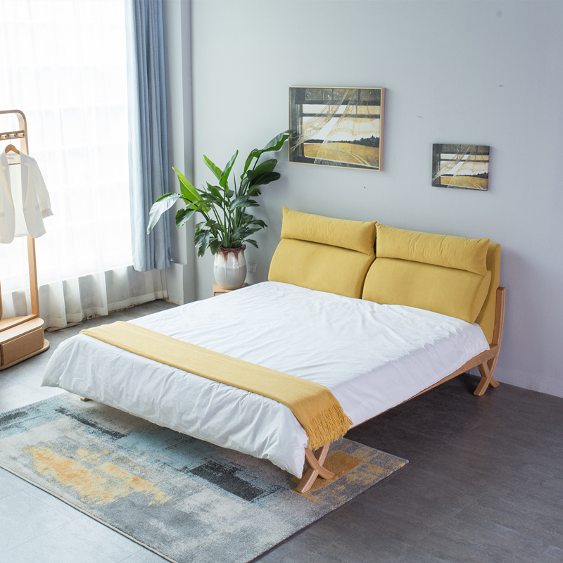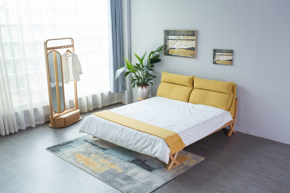 គ្រែពីរ # ឈើរឹងពណ៌លឿងក្តៅនេះធ្វើពីឈើរឹងទាំងអស់។ ខ្នើយទន់នៅក្បាលគ្រែ #ត្រូវបានភ្ជាប់ទៅនឹងក្បាលគ្រែជាមួយនឹងខ្សែរ៉ូត ដែលងាយស្រួលសម្រាប់ការប្រើប្រាស់ និងការលាងសម្អាតខ្នើយក្បាល។ ការរចនាតែមួយគត់នៃជើងគ្រែកោង និងឈើឆ្កាងមានការគាំទ្រប្រកបដោយស្ថេរភាពខណៈពេលដែលមានភាពស្រស់ស្អាត។ ពូកពណ៌លឿង និងសក៏បន្ថែមភាពកក់ក្ដៅដល់បន្ទប់គេងរបស់អ្នកដែរ។