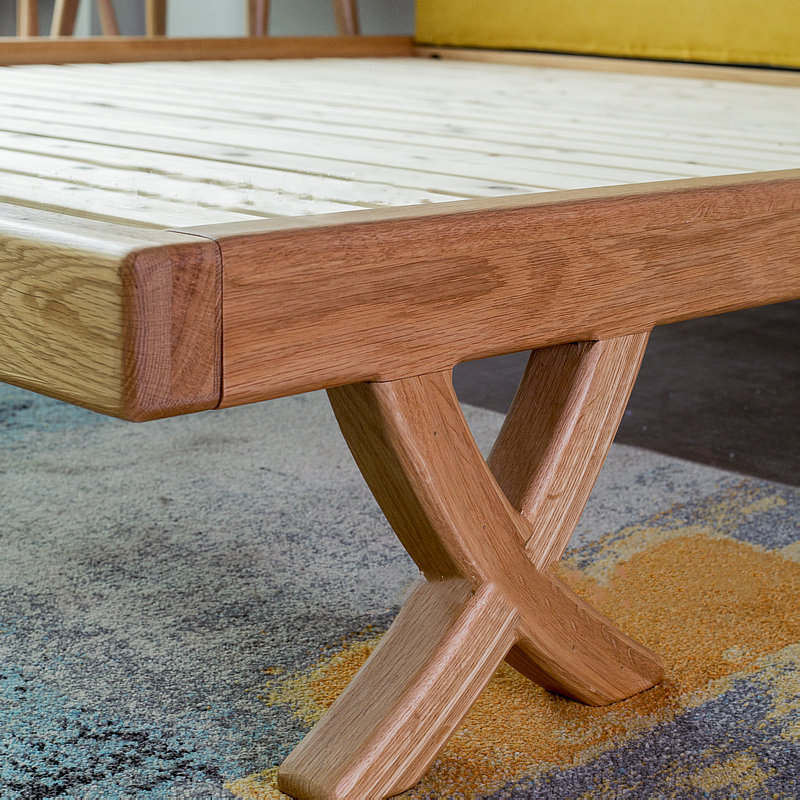 ជើងគ្រែឈើដ៏រឹងមាំជាមួយនឹងការរចនារចនាសម្ព័ន្ធកោង និងឈើឆ្កាង មានភាពរឹងមាំបន្ថែមទៀតដើម្បីទ្រទ្រង់ #គ្រែ ក្រៅពីរូបរាងដ៏ស្រស់ស្អាត។ #គ្រែដែលរចនាតាមរបៀបនេះមានបួនជ្រុងច្រើនជាងគ្រែជើងបួនធម្មតា ហើយរចនាសម្ព័ន្ធ #គ្រែមានស្ថេរភាពជាង។