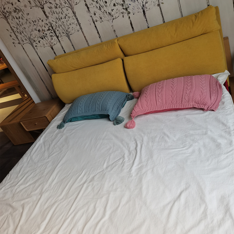ក្បាលគ្រែ #គ្រែពីរធ្វើពីឈើរឹងនេះត្រូវបានរចនាឡើងជាមួយនឹងថង់ទន់ដែលអាចដកចេញបាន និងអាចបោកគក់បាន។ ខ្នើយនៅលើក្បាល #គ្រែត្រូវបានភ្ជាប់ទៅនឹងក្បាល #គ្រែតាមរយៈខ្សែរ៉ូត ដូច្នេះខ្នើយអាចដោះចេញដើម្បីសម្អាត និងថែទាំបានគ្រប់ពេលវេលា។ ក្រណាត់ដែលប្រើសម្រាប់ខ្នើយគឺ flannel ពណ៌លឿងក្តៅ ដែលទន់ និងមានផាសុកភាព។ អេប៉ុងធន់ខ្ពស់ដែលបំពេញនៅក្នុងខ្នើយមានលក្ខណៈធន់ល្អ និងមិនងាយដួលរលំ ដែលនាំមកជូនអ្នកប្រើប្រាស់នូវបទពិសោធន៍សម្រាកប្រកបដោយផាសុកភាព។