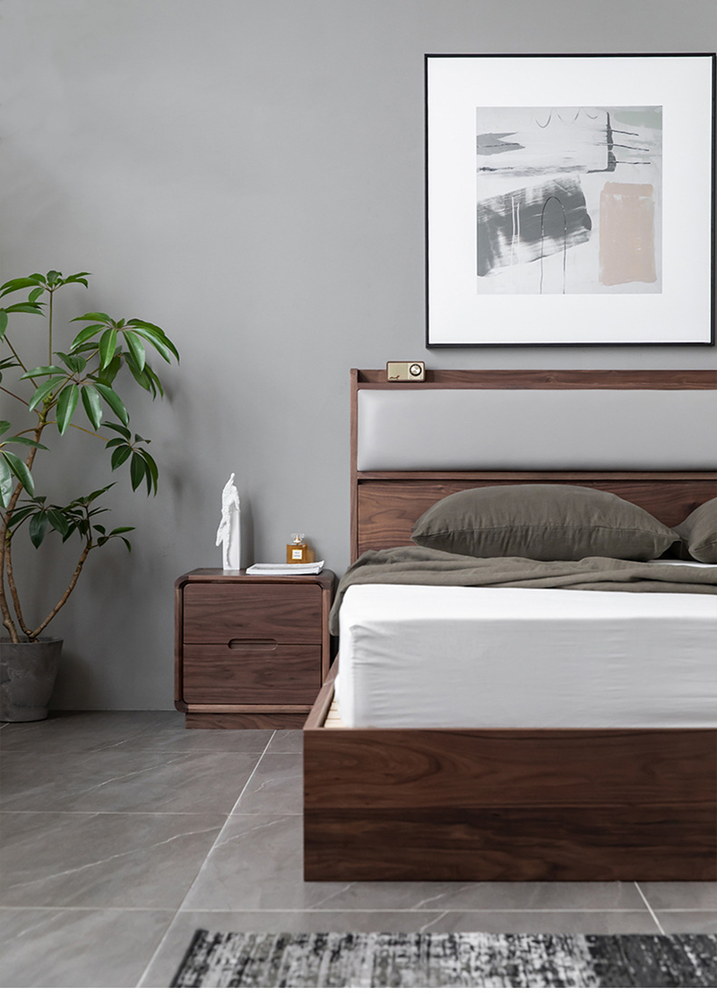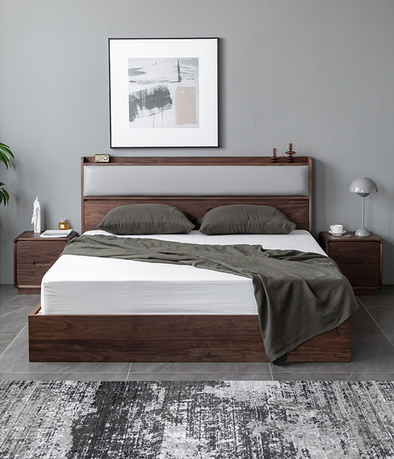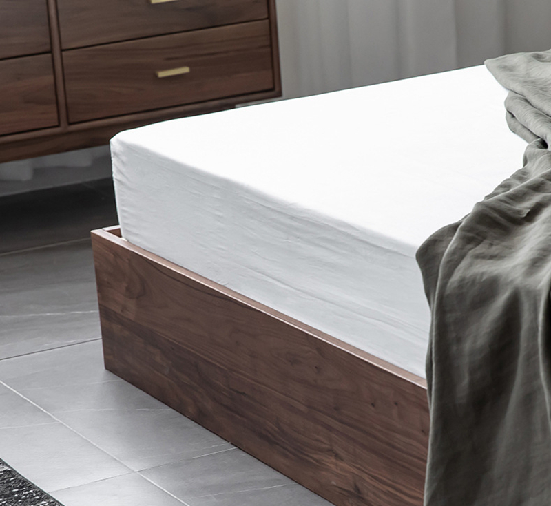 Түндүк Американын кара жаңгагы катуу жыгач Nordic заманбап минималисттик шкаф сактоочу мастер уктоочу бөлмө эки кишилик керебет 0002