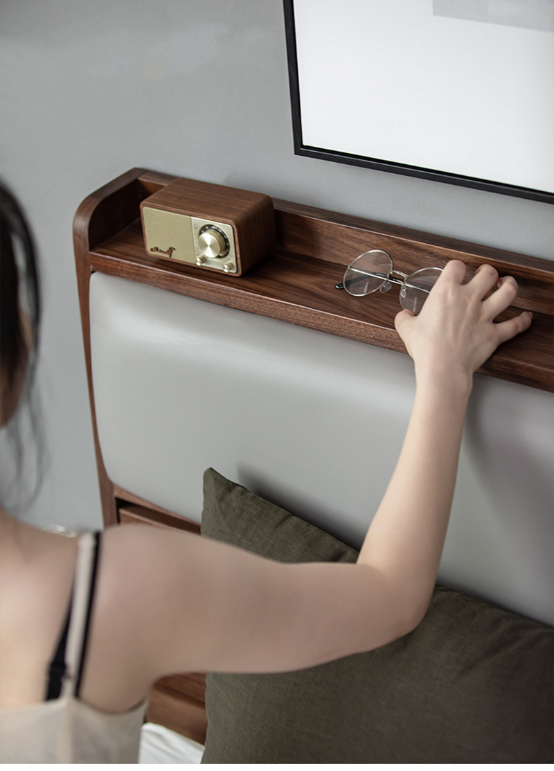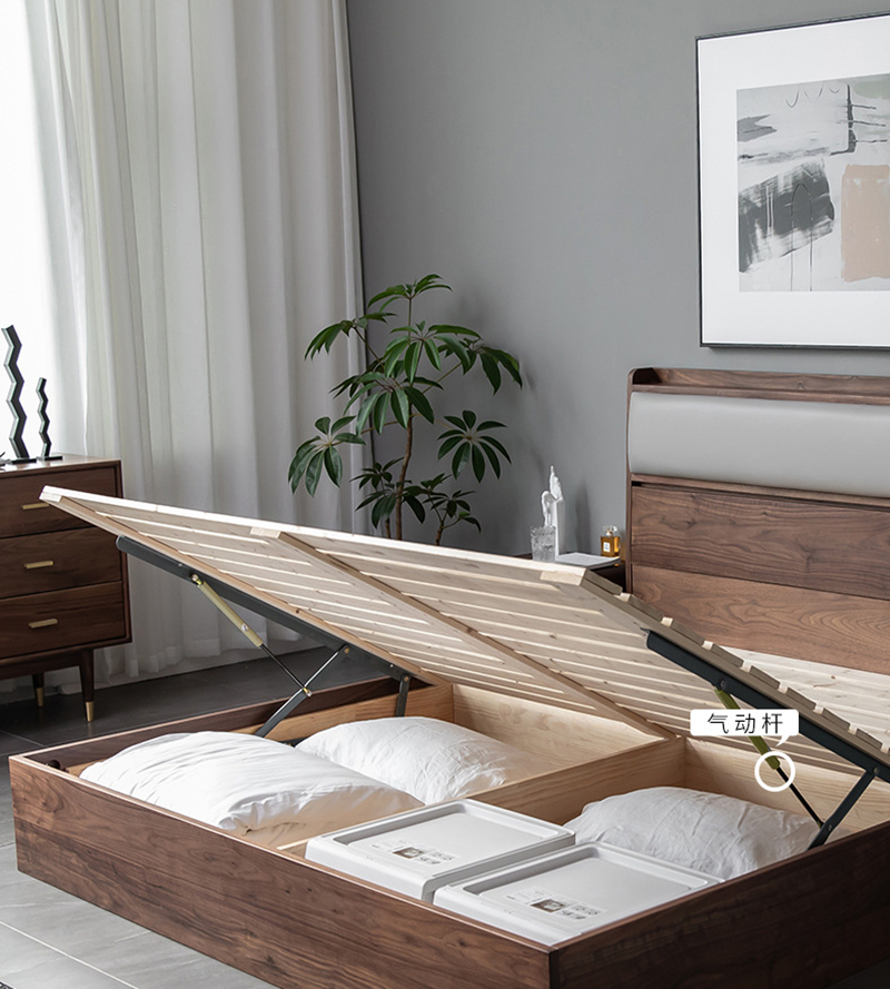 Продукт аты: Түндүк Американын кара жаңгагы катуу жыгач Nordic заманбап минималисттик кабинет сактоочу мастер уктоочу эки керебет 0002