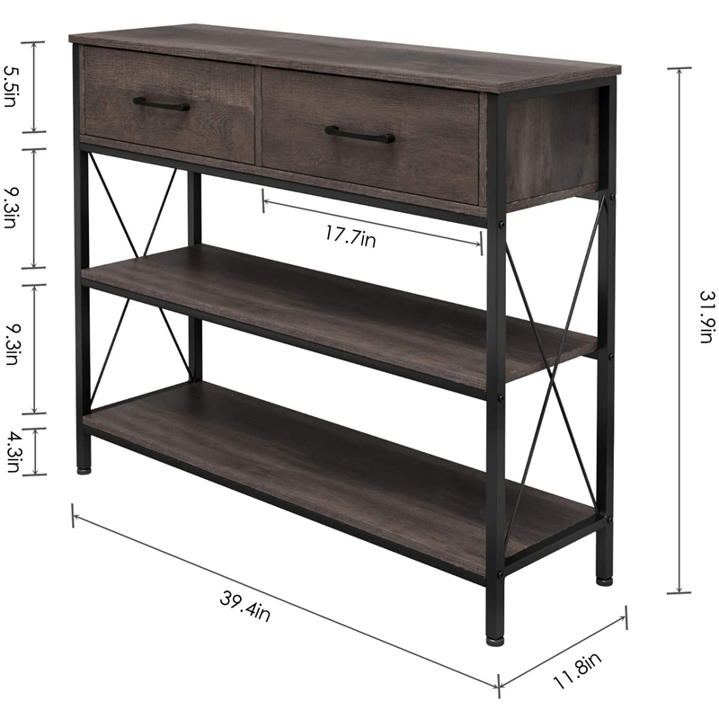Šis foajē #skapis ir veidots retro lauku stilā, vintage stila viesistabas organizatoram ir dabiska koka faktūras un vintage apdare, lai jūsu dzīvojamā zonā ienestu industriālu garu un lauku šarmu. Retro un lauku stila metāla rokturi nodrošina lietotājiem lielāku ērtību glabāšanas #skapja atvilktņu izmantošanā. X-veida metāla karkasa konstrukcijas dizains noliktavas #skapja sānos labāk nodrošina noliktavas skapja konstrukcijas stabilitāti. Regulējami kāju spilventiņi #skapja kāju apakšā aizsargā jūsu grīdu un samazina troksni, velkot #skapi.