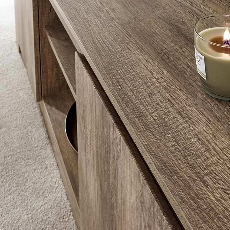 Ity TV #cabinet hazo lafo vidy maivana ity dia novolavolaina tamin'ny endrika vita amin'ny hazo oak miavaka 3D foil izay manasongadina marika tsofa kisendrasendra ho endrika tsy manam-paharoa. Na any amin'ny hotely, na trano, na efitra fandraisam-bahiny na efitra fatoriana ao an-trano, ity TV #cabinet manana endrika miavaka ity dia fanaka avo lenta sy azo ampiharina.