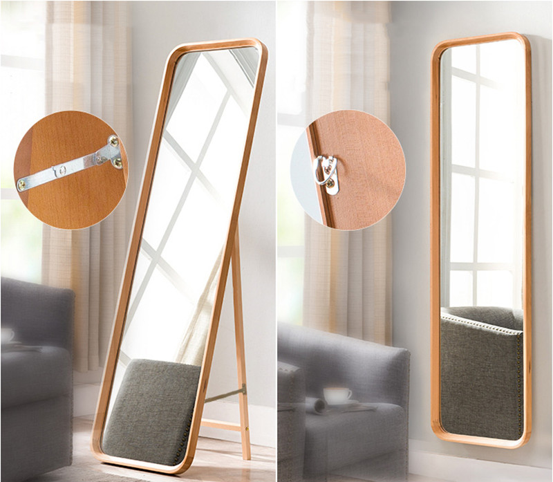 ഓൾ സോളിഡ് വുഡ് ഫ്ലോർ ഡ്രസ്സിംഗ് ഹോം മോഡേൺ മിനിമലിസ്റ്റ് സ്മോൾ അപ്പാർട്ട്മെൻ്റ് ഫിറ്റിംഗ് ഹോൾ ബോഡി ബെഡ്‌റൂം ബ്രാക്കറ്റ് മിറർ 0030