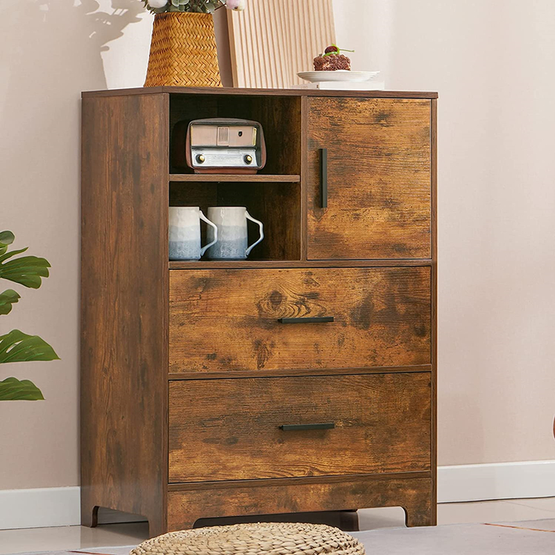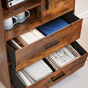 ഫ്ലോർ സ്റ്റാൻഡിംഗ് ഡിസൈനിലെ ഈ റസ്റ്റിക് ബ്രൗൺ സൈഡ് #കാബിനറ്റ് 60*35*82 സെൻ്റിമീറ്ററും ഡ്രോയറുകൾ 55*31*18 സെൻ്റിമീറ്ററും അളക്കുന്നു. ഡ്രോയറുകൾ വളരെ വിശാലമാണ്, അതിനാൽ നിങ്ങൾക്ക് എല്ലാത്തരം ഇനങ്ങളും പൂർണ്ണമായും സംഭരിക്കാനാകും. റസ്റ്റിക് ബ്രൗൺ സൈഡ് #കാബിനറ്റ് രൂപകൽപ്പനയിൽ വളരെ ന്യായമാണ്, ഉപയോക്താക്കൾക്ക് കൂടുതൽ സ്റ്റോറേജ് സ്പേസ് നൽകുമ്പോൾ കുറച്ച് ഫ്ലോർ സ്പേസ് എടുക്കുന്നു. ഈ വശത്തെ # കാബിനറ്റ് മുൻവാതിൽ, ബാഗുകൾ, കിടപ്പുമുറിയിൽ ചെറിയ ഇനങ്ങൾ സൂക്ഷിക്കാൻ അനുയോജ്യമായ ഒരു പുതിയ "ലാൻഡിംഗ് സ്പോട്ട്" ആകാം.