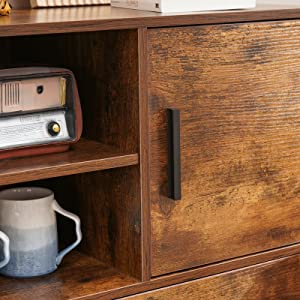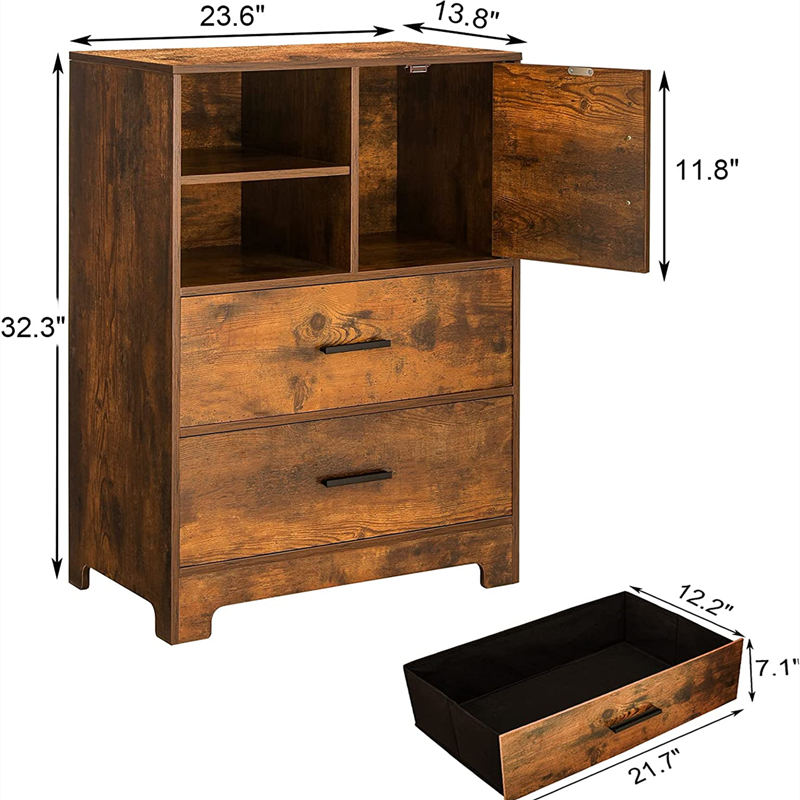 ഈ റെട്രോ ബ്രൗൺ സൈഡ് #കാബിനറ്റ് രൂപകൽപ്പന ചെയ്തിരിക്കുന്നത് ഒരു വലിയ സ്റ്റോറേജ് ഡ്രോയർ ഉപയോഗിച്ചാണ്, അതിൽ കുട്ടികളുടെ വസ്ത്രങ്ങൾ, കളിപ്പാട്ടങ്ങൾ, മുതിർന്നവർക്കുള്ള വിവിധ ബാഗുകൾ, ആക്സസറികൾ എന്നിവ വീട്ടിലിരുന്ന് ഉപയോക്താക്കളുടെ സംഭരണ ആവശ്യങ്ങൾ നിറവേറ്റാൻ കഴിയും.