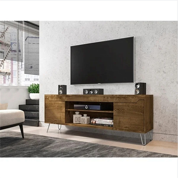 ഈ ടിവി #സ്റ്റാൻഡ് സമകാലിക മനോഹാരിതയ്ക്കായി വൃത്തിയുള്ള ലൈനുകളുള്ള മിഡ്-സെഞ്ച്വറി ഡിസൈൻ അവതരിപ്പിക്കുന്നു. ചരിഞ്ഞ മെറ്റൽ കാലുകൾ നിങ്ങളുടെ ടിവിക്ക് മതിയായ പിന്തുണ നൽകുന്നു, കൂടാതെ ഓപ്പൺ ഷെൽവിംഗ് നിങ്ങളുടെ പെരിഫറലുകളും മീഡിയയും സ്ഥാപിക്കാൻ ഇടം നൽകുന്നു.