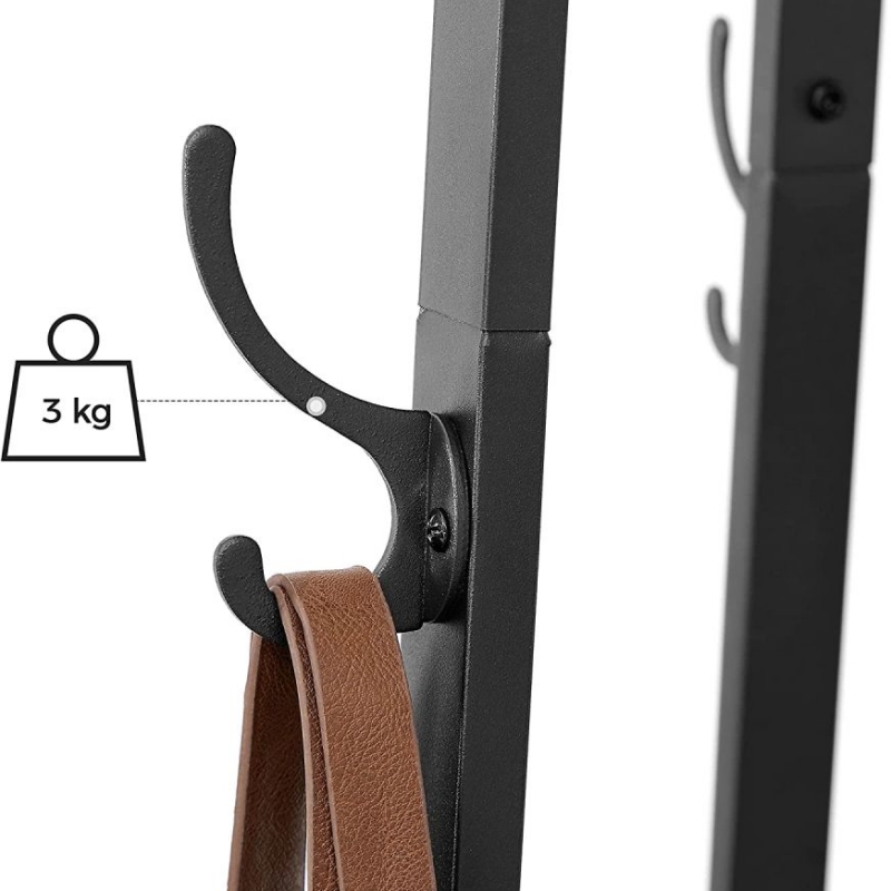 Энэхүү чимэг бор, хар пальто # өлгүүр нь мөн дэгээгээр хийгдсэн бөгөөд энэ нь хэрэглэгчдэд хувцас, цүнх өлгөхөд илүү тохиромжтой. Металл дэгээ бүр нь 3 кг жинтэй тул хэрэглэгчид эд зүйлсийг дэгээ дээрээ итгэлтэйгээр өлгөх боломжтой.