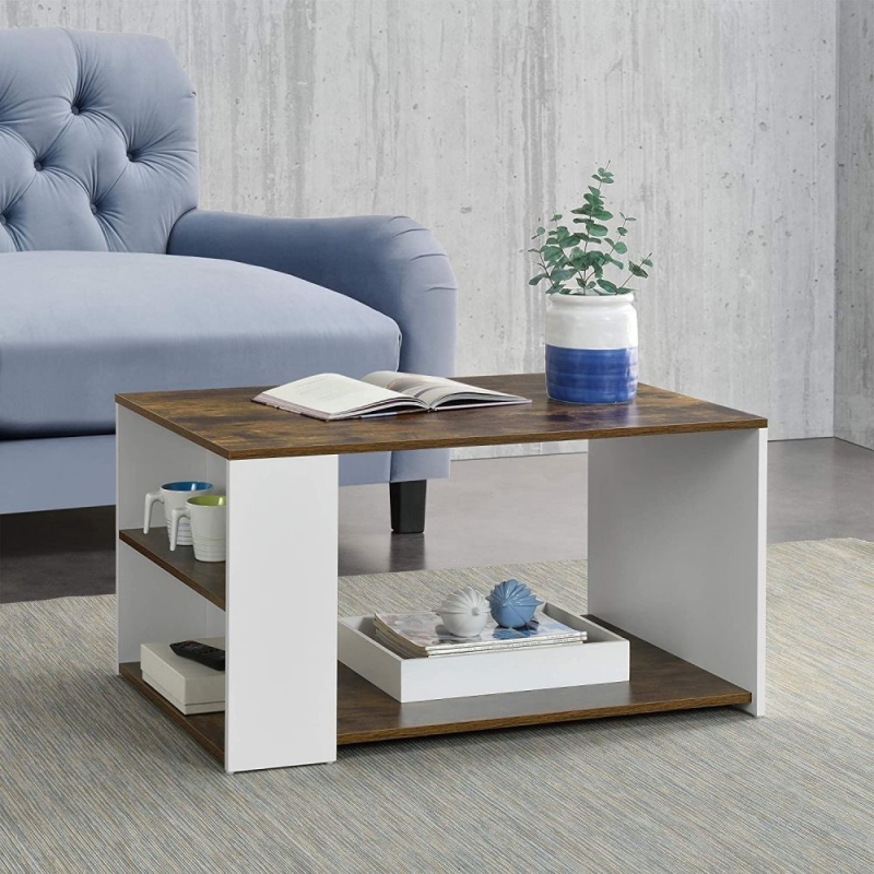 Deze salontafel heeft een eenvoudig ontwerp en de salontafel is verkrijgbaar in bruin+zwart en bruin+wit. Deze salontafel is ontworpen met voldoende opbergruimte, wat goed kan voldoen aan de wensen van gebruikers.