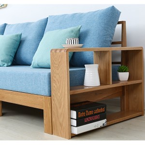Sidearmlenene på sofaen er utformet som enkle bokhyller, som er praktiske for plassering av bøker, skrivebordslamper, potteplanter og praktiske småting eller dekorasjoner. Ulike oppbevaringsrom er delt inn i øvre og nedre etasje. Det er en skillevegg i midten av det øvre rommet, som deler det øvre rommet i to deler. På denne måten kan armlenet på sofaen ikke bare støtte, men også lagre ting, noe som er en del av den generelle humaniserte designen til sofaen.