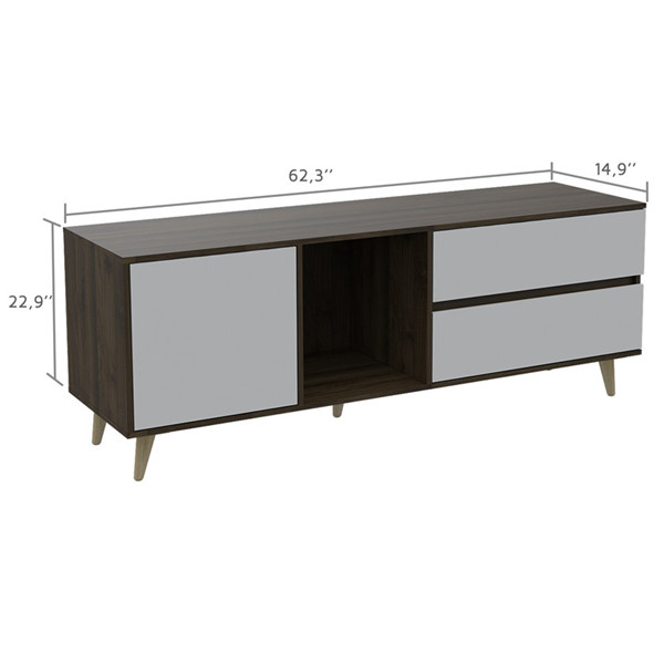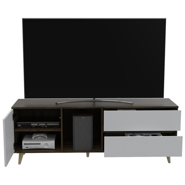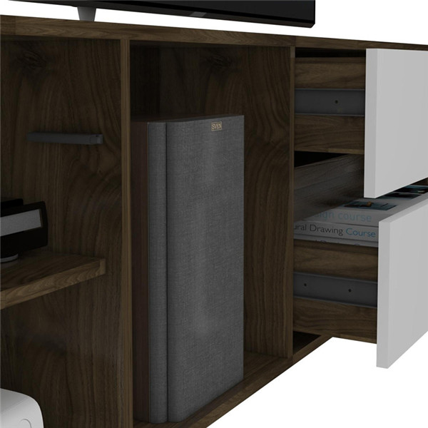 دا کولی شي د 65 انچو لاندې فلیټ سکرین تلویزیونونه ځای په ځای کړي. 2 لوی دراز د کافي ذخیره کولو ځای چمتو کوي. د کابینې کافي ځای د لویو توکو او اجزاو ذخیره کولو لپاره کارول کیدی شي. 1 مرکزي خلاص شیلف. د سینګار، هنري کار یا نورو برخو لپاره کارول کیدی شي. د فعالیت قرباني کولو ته اړتیا نشته.