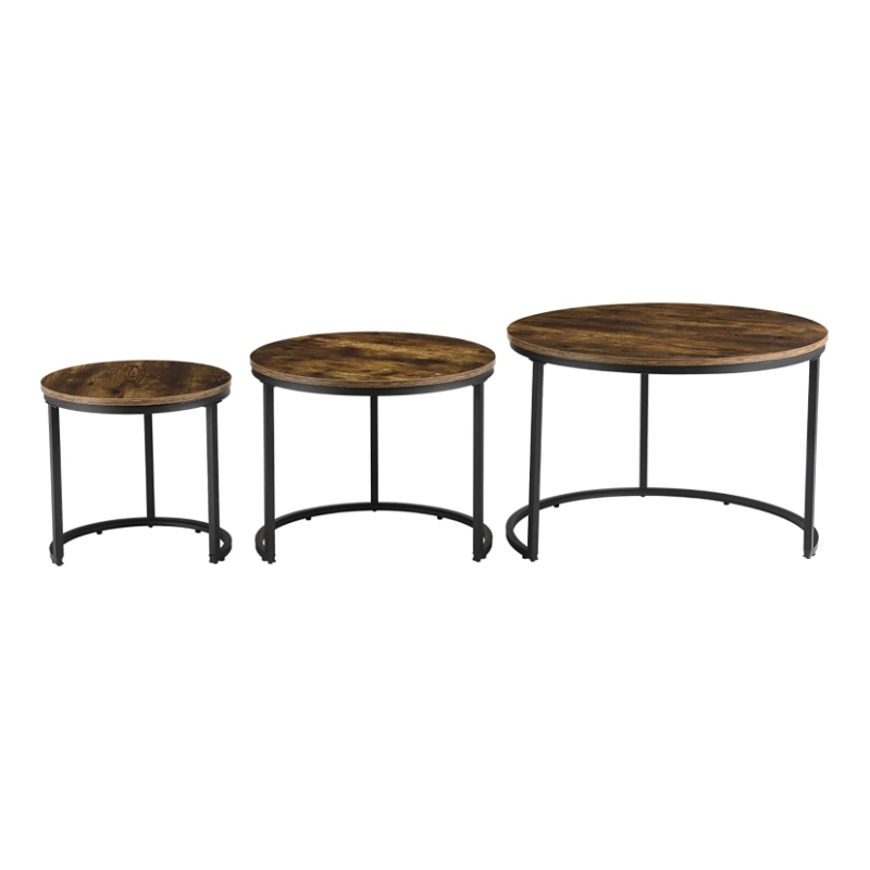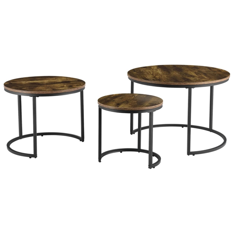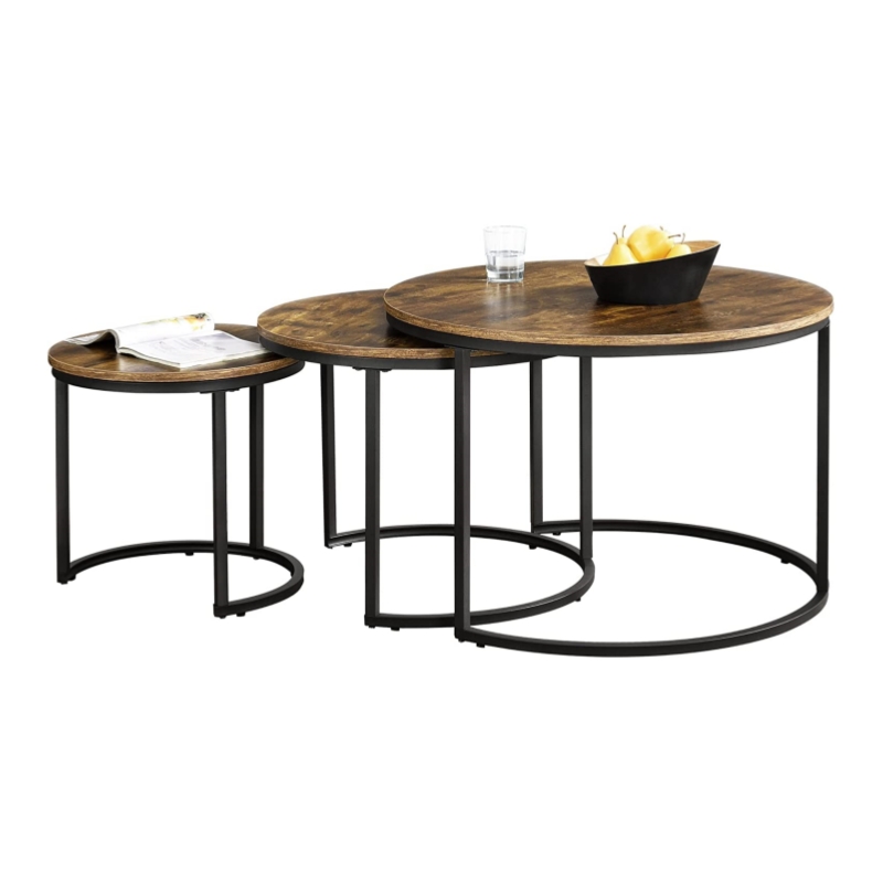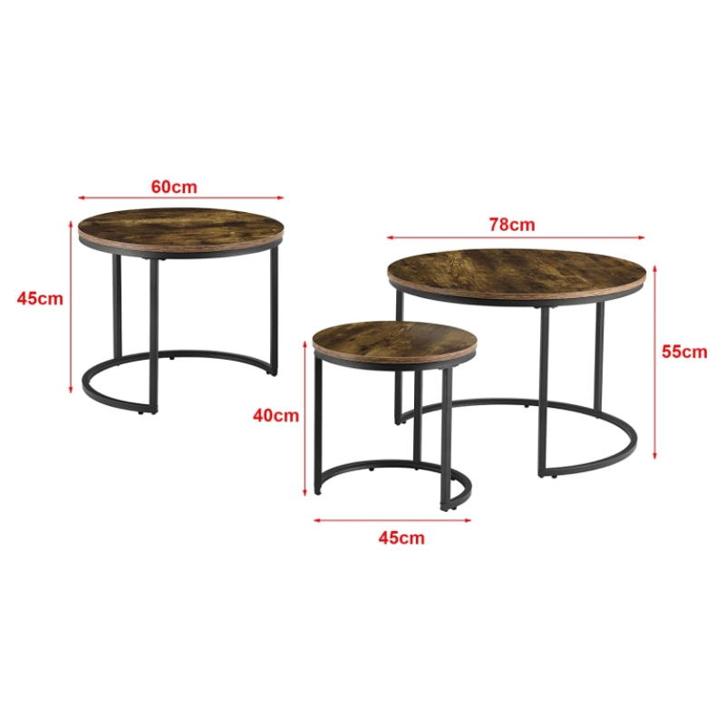 Ky është një grup i thjeshtë #tavoline kafeje të rrumbullakët, #tavolina e kafesë adopton një dizajn modern të folesë, në mënyrë që tavolina #kafe të mund të rregullohet dhe përdoret sipas nevojave të përdoruesit. Kurseni hapësirë duke grumbulluar #tavolina kafeje së bashku. Një grup me 3 #tavolina kafeje të madhësive të ndryshme mund të plotësojë nevojat e ndryshme të përdoruesve të ndryshëm. Në dhomën e ndenjes, mund ta përdorni #tavolinën e kafesë si një tavolinë anësore dhe të gjallëroni shtëpinë tuaj me shumë hapësirë për ushqime, dekorime ose një ose dy dritë. Kur të ftuarit tuaj largohen dhe ju duhet të ktheheni në dhomën e ndenjes, thjesht mund t'i palosni këto tavolina fundore për ruajtje të lehtë.