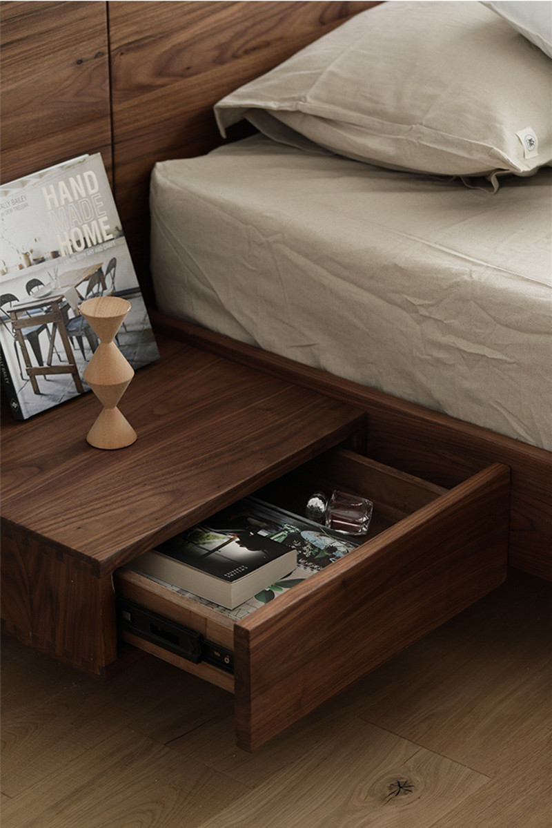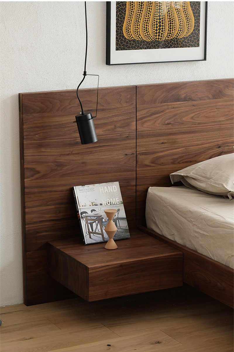 ·Jedwali la kando ya kitanda limeunganishwa na sehemu ya nyuma ya #kitanda, na kuifanya iwe rahisi.