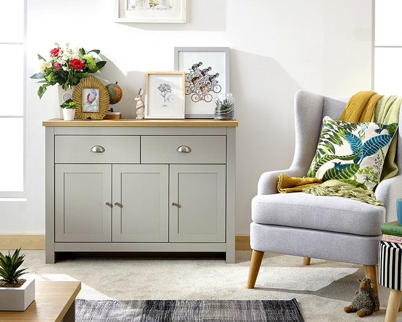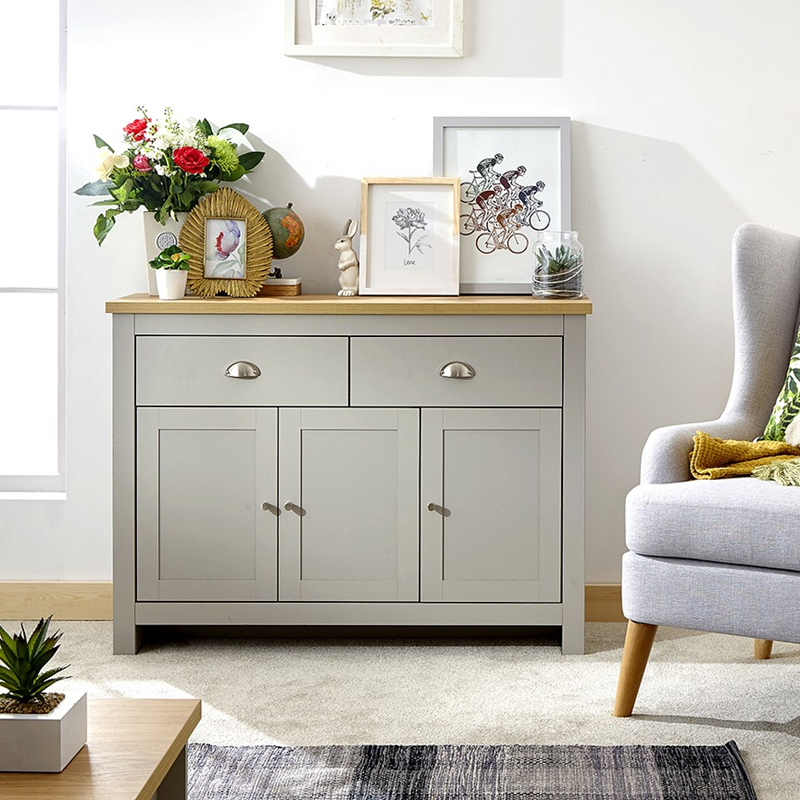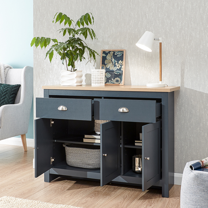 #ตู้เก็บของสไตล์โมเดิร์นขนาดใหญ่และมีสไตล์ที่เต็มไปด้วยเอกลักษณ์เฉพาะตัว การผสมผสานระหว่างสีเทาและสีน้ำเงิน สีครีมสีขาวและสีโอ๊คเข้ากันได้เป็นอย่างดี #ตู้ได้รับการออกแบบให้มีพื้นที่กว้างขวางสำหรับสิ่งของชิ้นเล็กและชิ้นใหญ่ และมีส่วนเก็บของแยกต่างหากบนตู้ไซด์บอร์ด