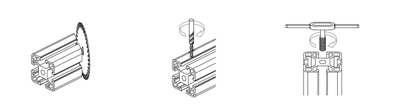 3. Pag-tap, pagsuntok ng turnilyo sa gitna ng dulong mukha ng #aluminum profile na ikokonekta, at pag-tap ayon sa laki ng napiling turnilyo.